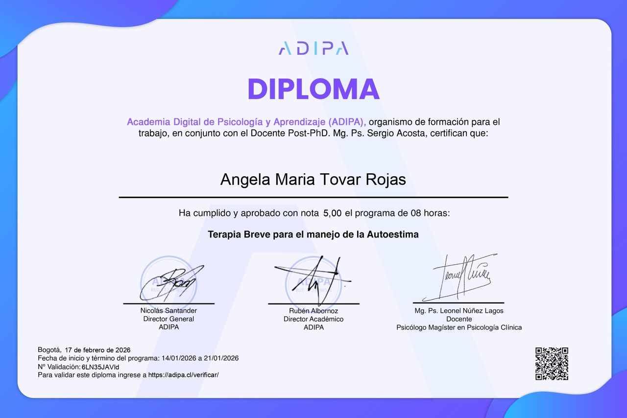 - Psicóloga. Pontificia Universidad Javeriana, Colombia. 2004.
